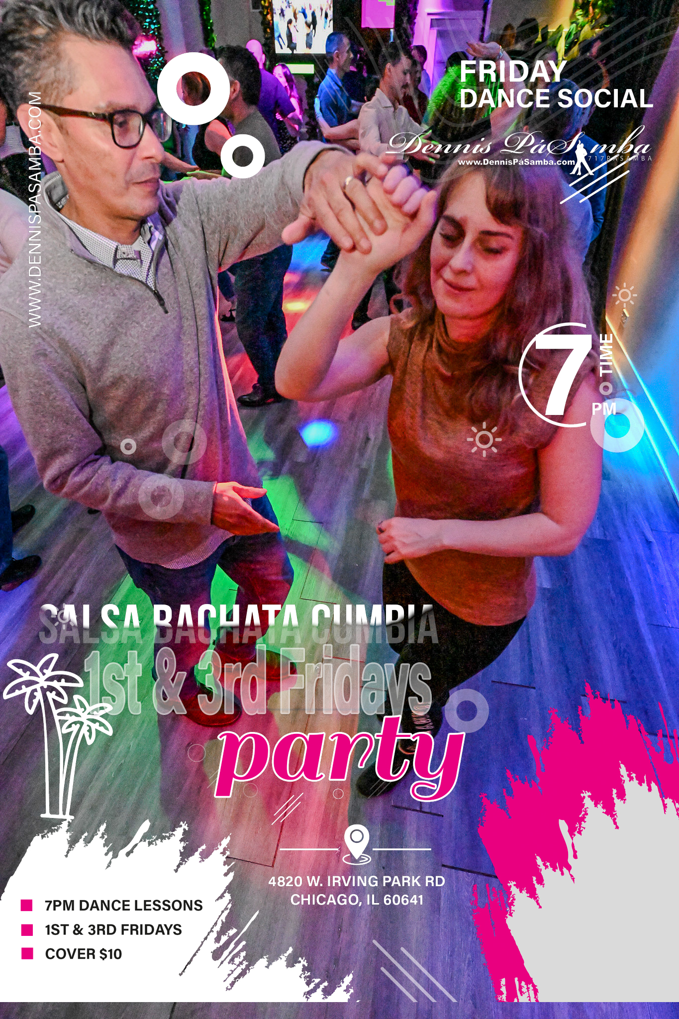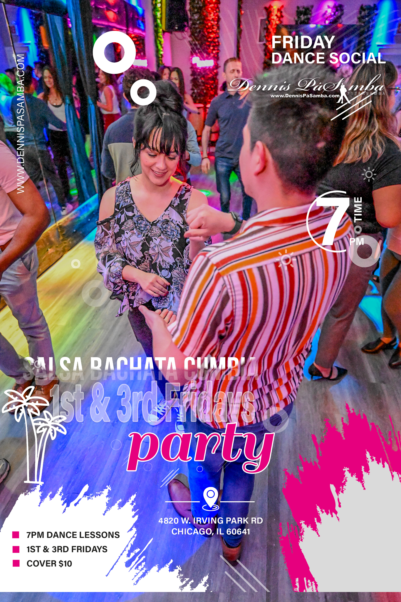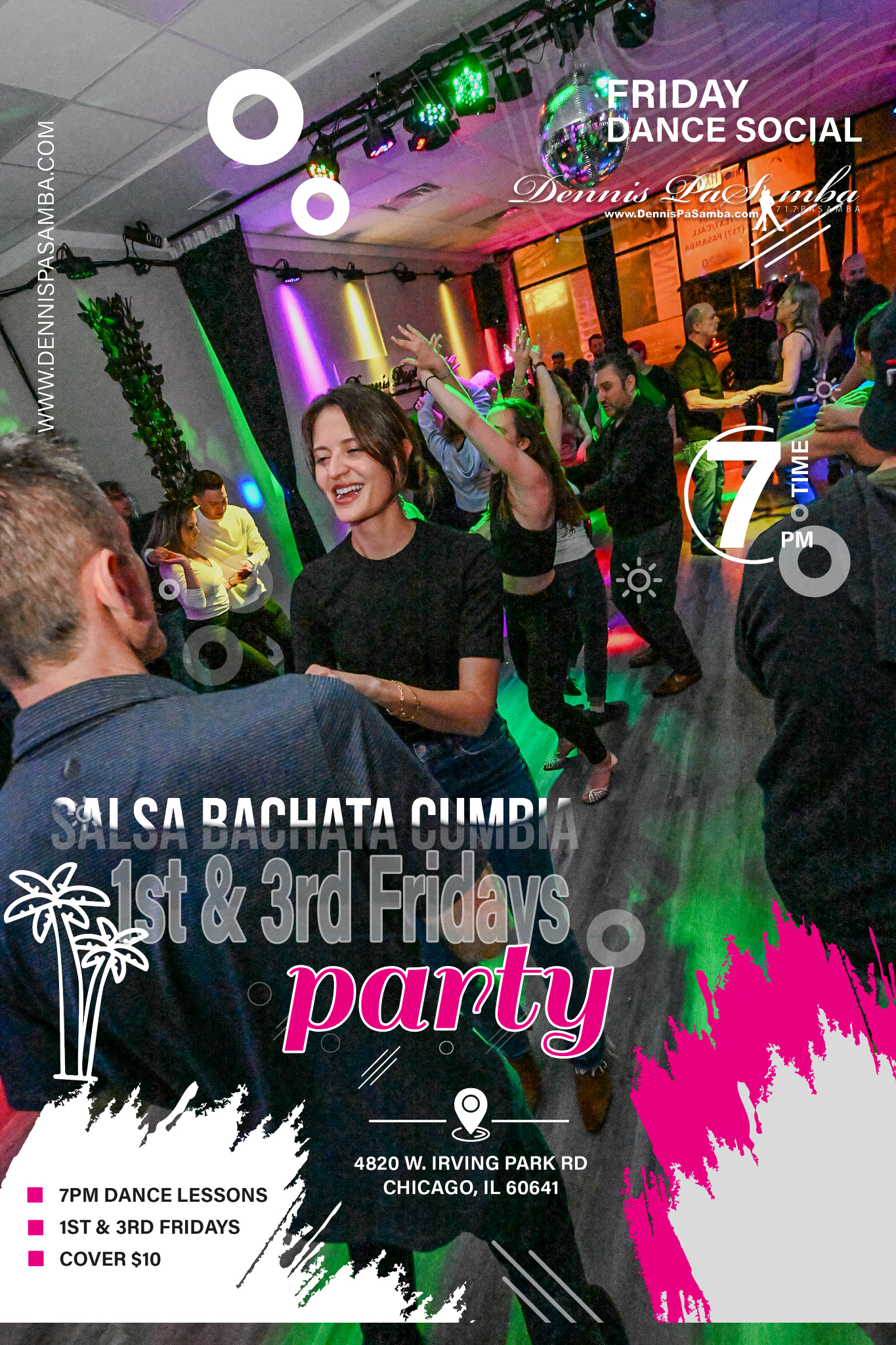 Ready to light up your Friday nights? Spaces are limited, so secure your spot for the next Friday Night Dance Social at dennispasamba.com. Call (773) 727-2622 to learn more or visit us at 4820 W. Irving Park Rd, Chicago, IL 60641. Follow us on social media for updates, dance tips, and more: #ChicagoDanceSocial #SalsaChicago #BachataParty #KizombaNights. Grab your dancing shoes and join Chicago’s best dance community—let’s make every Friday unforgettable!